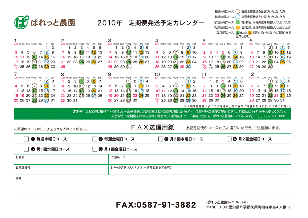 詳しくは2010年 定期便発送予定カレンダーをご覧ください。